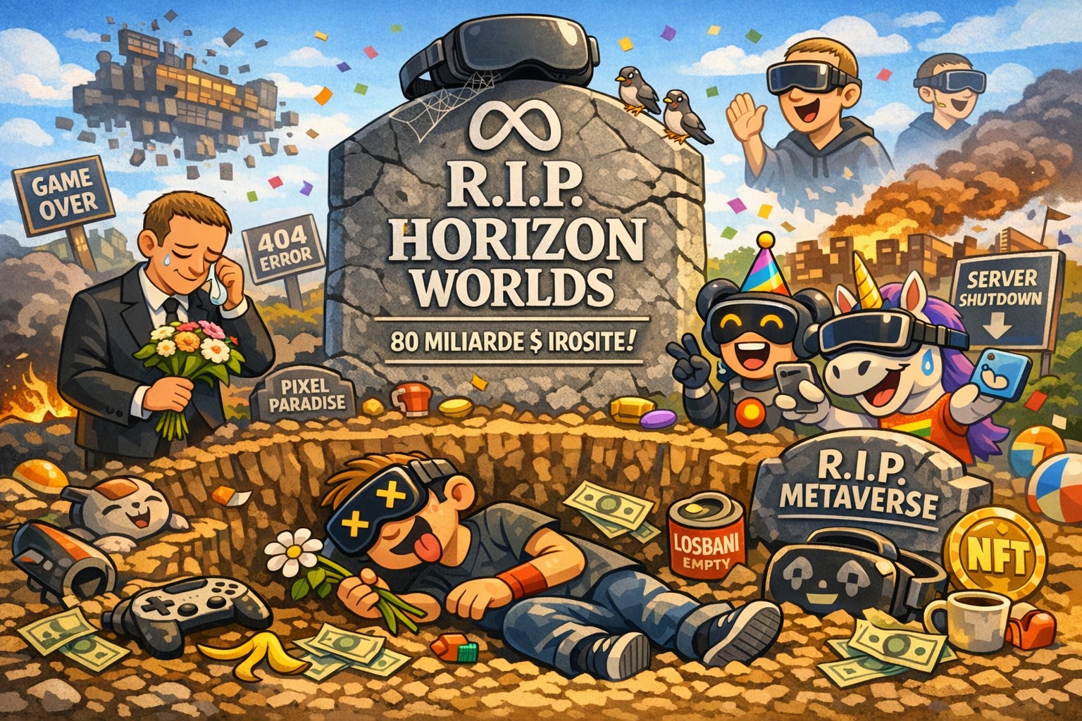 Horizon Worlds nu a depășit niciodată 200.000 de utilizatori activi lunar. Reality Labs, divizia construită să livreze metaversul, a pierdut între 70 și 80 de miliarde de dolari din 2020 încoace. Numai în Q4 2025, pierderea operațională a fost de 6,02 miliarde de dolari.