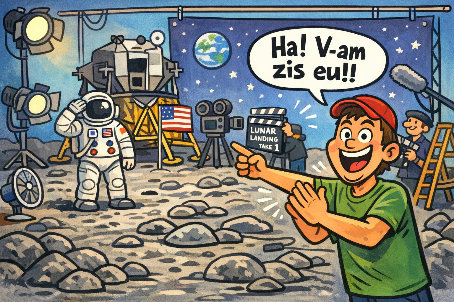 Și sub fiecare postare românească despre asta? Mii de comentarii. Aceleași, în variații fără sfârșit. Că totul e o minciună. Că NASA filmează în studiouri Disney. Că Stanley Kubrick regizează aselenizările, cumva, de dincolo de mormânt. Că rachetele se vor lovi de o cupolă de sticlă pentru că Pământul e plat.