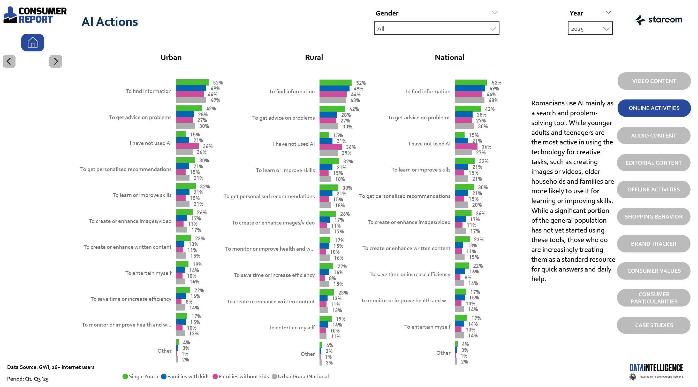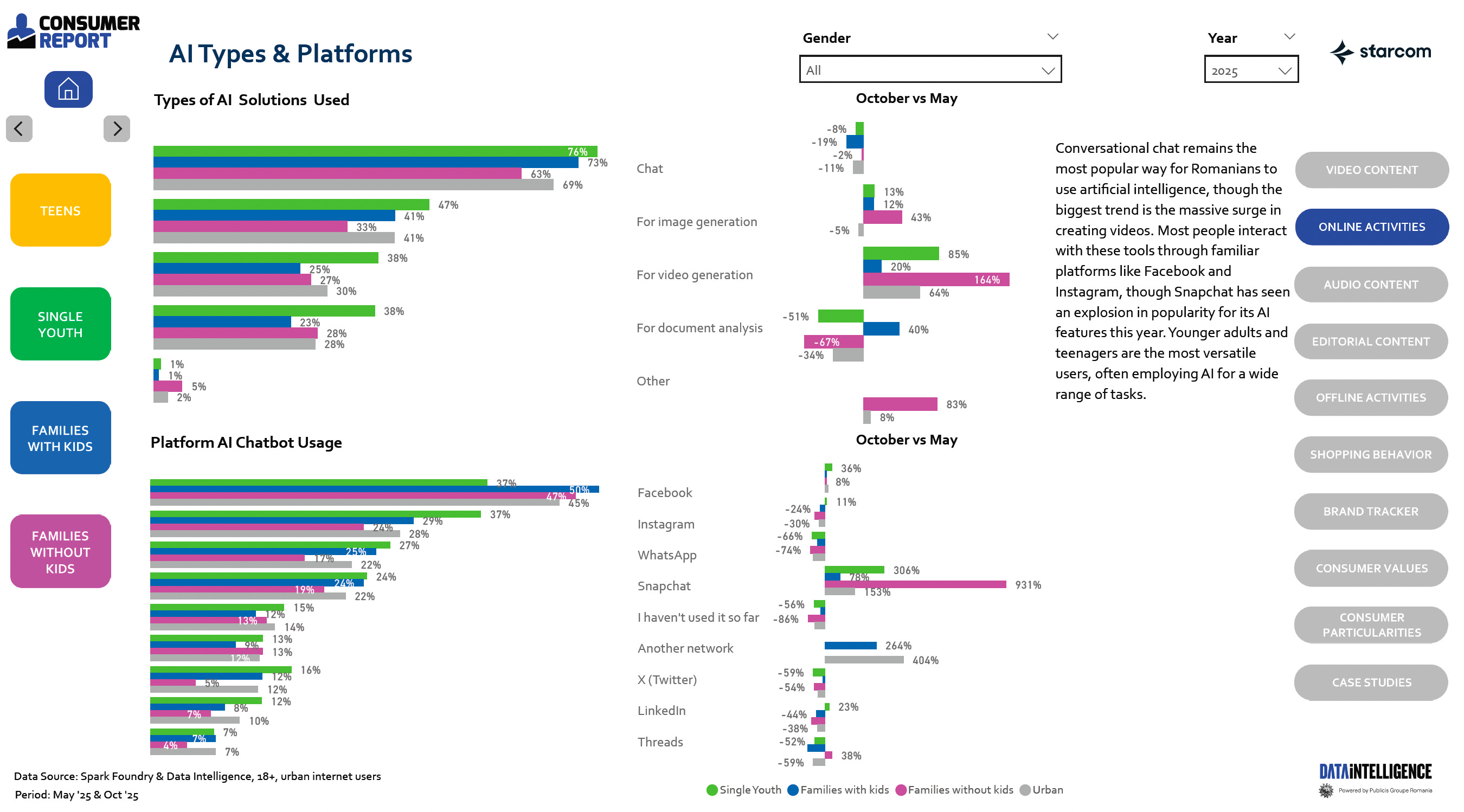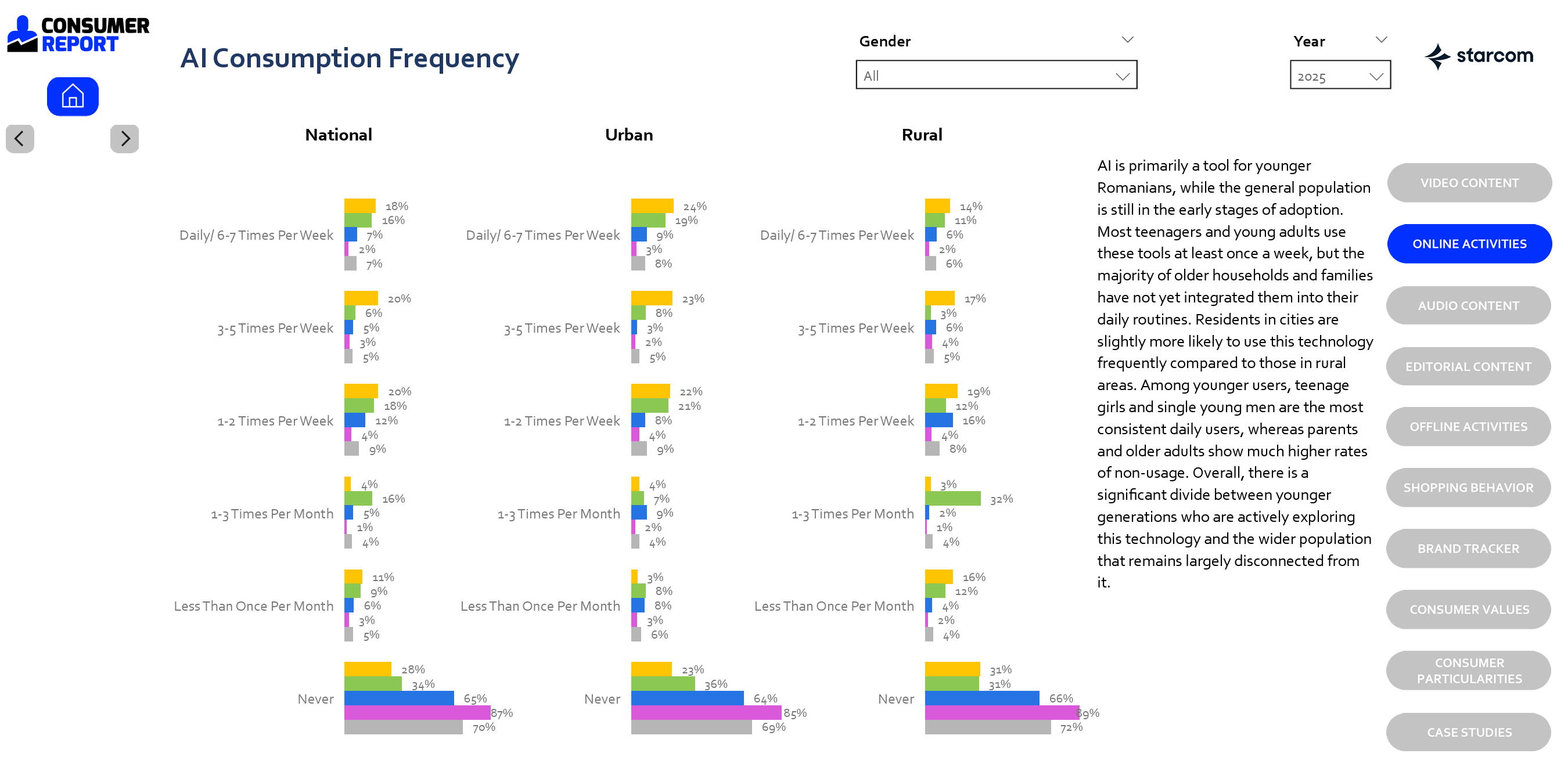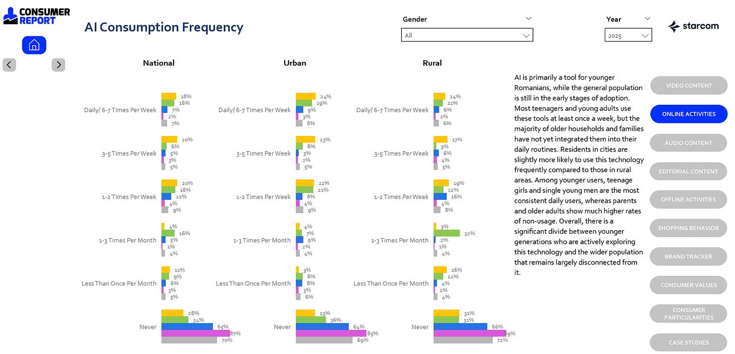 Mă uitam peste Consumer Report 2025 de la Starcom, pentru că am o obsesie nebună pentru grafice, statistice și comportamente de consum. Cred că toți avem câte o obsesie d-asta, dar ce mă bucură e că avem mai nou tools utile care să arate landscape-ul de consum din România.