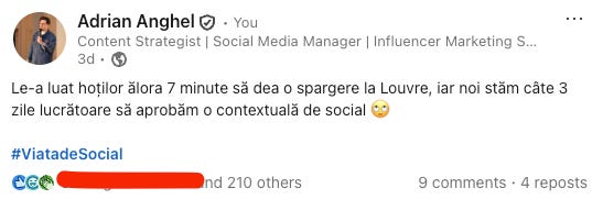 Mi-am permis o buclucașă pe LinkedIn săptămâna trecută și mă laud și eu pentru cele 10 minute de faimă.