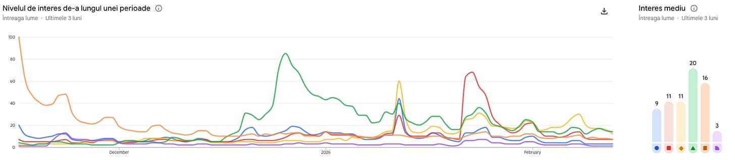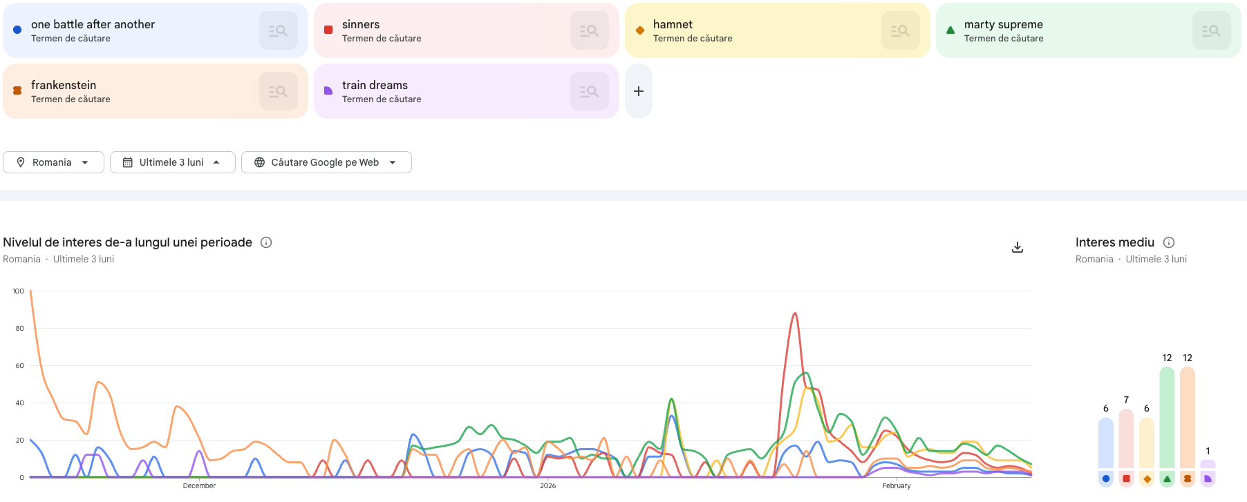 Și ideea e că nu m-am dus departe. Google Trends a fost îmbunătățit foarte mult lately, iar românii încă își pun mult baza în Google. Așadar, termenii de căutare au fost fix numele filmelor. Că ce altceva mai bun să fie, în oricare altă combinație de interes tot se află acolo.